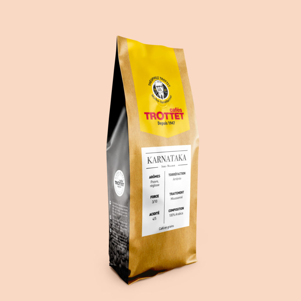 Le café de spécialité Inde Karnataka reste l’un des cafés les plus appréciés de notre gamme en raison de son profil organoleptique très particulier. Contrairement à la majorité des cafés qui offrent un goût fruité, acidulé, le Karnataka, quant à lui, offre un profil complètement opposé avec des arômes de réglisse. En effet, c’est grâce à un traitement unique et indien « moussonné » que les cafés obtiennent ce type de profil.