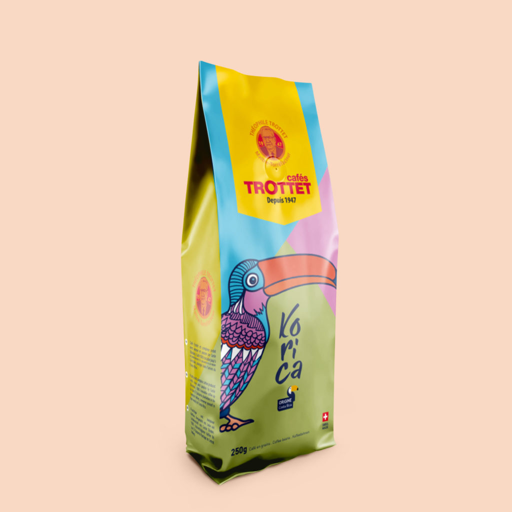 Korica est un café qui prend son nom en raison du pays : Costa Rica. Il naît d’un partenariat entre les Cafés Trottet et Carole Zbinden, une femme très active dans la culture du grain de spécialité. Elle reprend une « affaire familiale » au cœur du Costa Rica, à plus de 1’400 mètres d’altitude sur un sol volcanique, dans la région de la Vallée Centrale. Sa ferme au nom « El Quizarra » a su conquérir tous les torréfacteurs du monde.